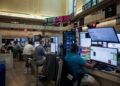 Traders work on the floor at the New York Stock Exchange (NYSE) in New York City, U.S., February 25, 2026....